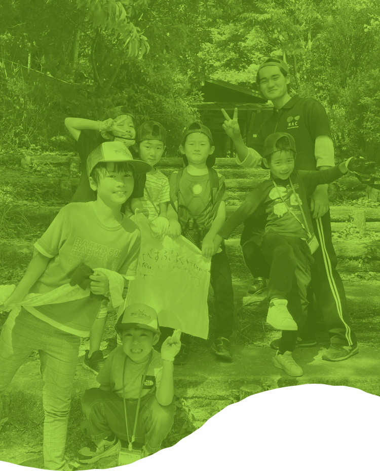 ナック(NAC)は、多年にわたり、学校教育・青少年教育(野外教育)・生涯教育等に専門的に取り組んできた有志が参集し、『子ども達が自然とのふれあいを通して(Nature)未知のものに挑戦する意欲(Adventure)や自分自身を成長させる力を育むこと(Culture)』を目的として設立されたNPO法人です。