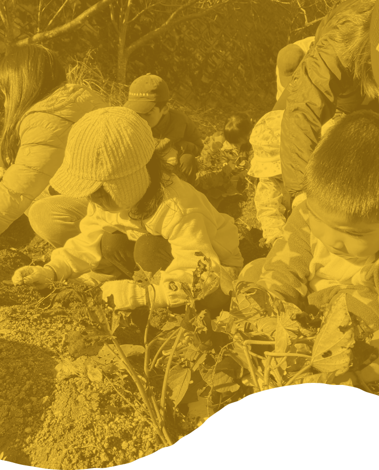 ⾃然体験・⽣活体験の中で、興味や関⼼を⾼め、豊かな⼼を育みます。